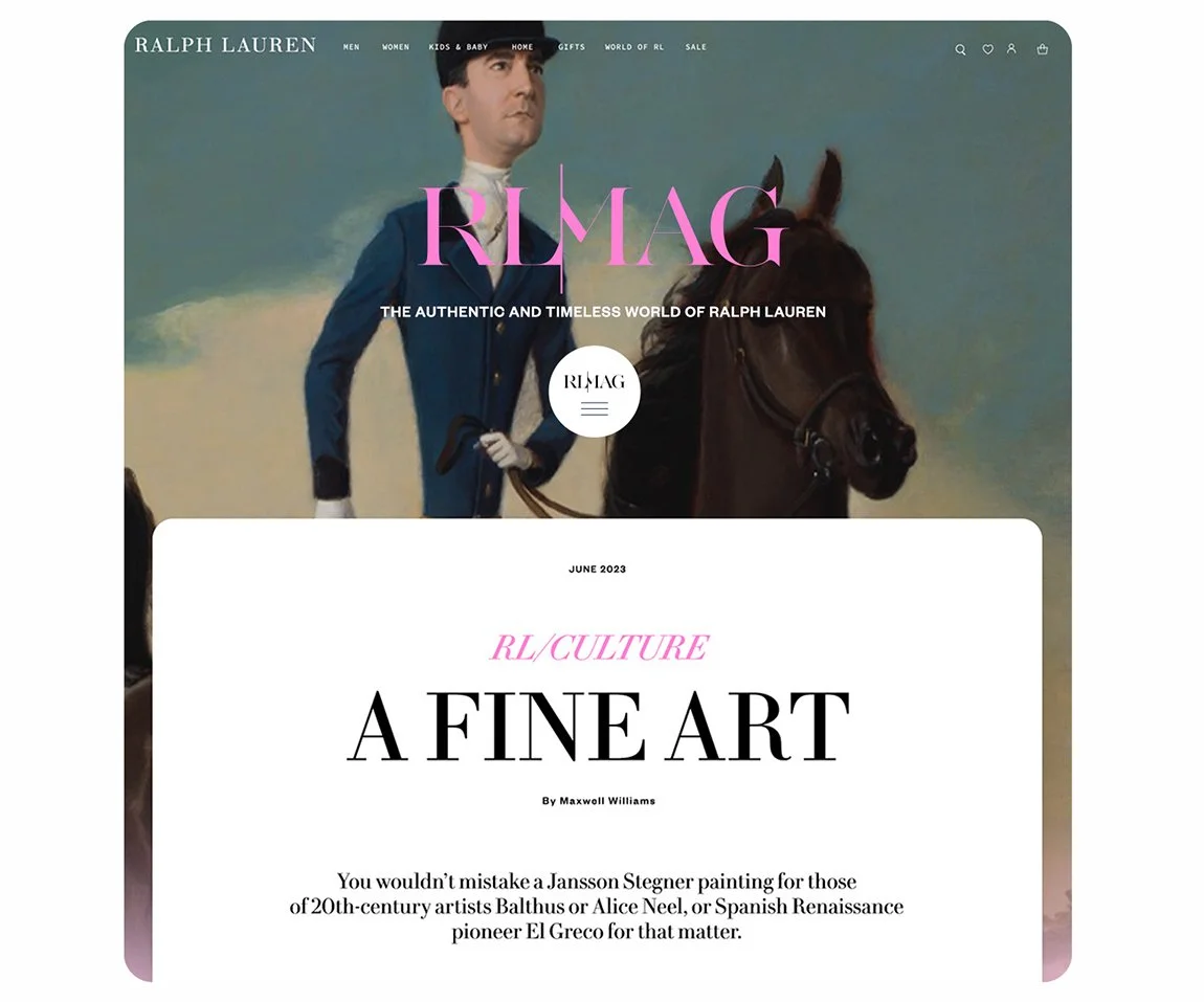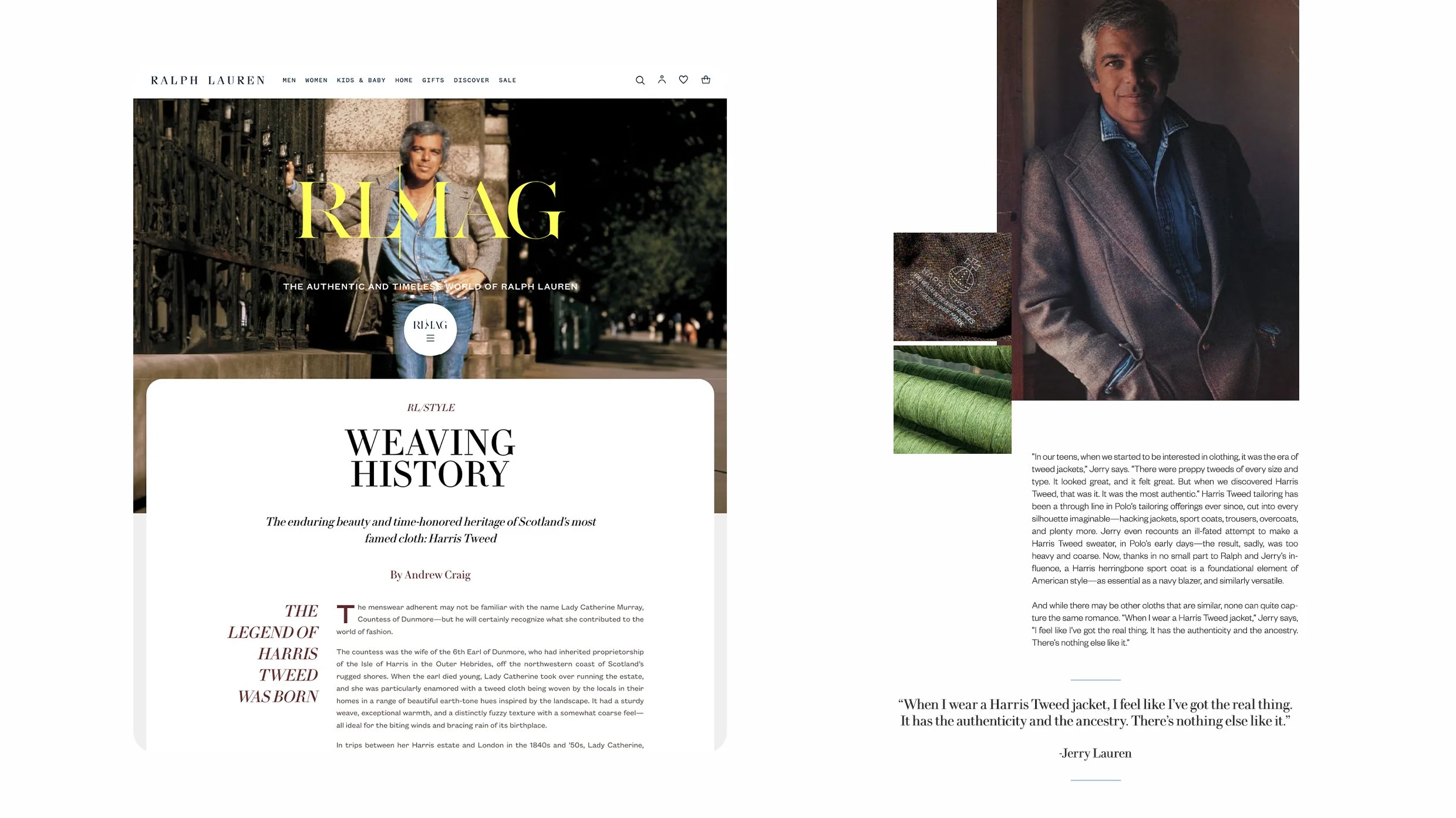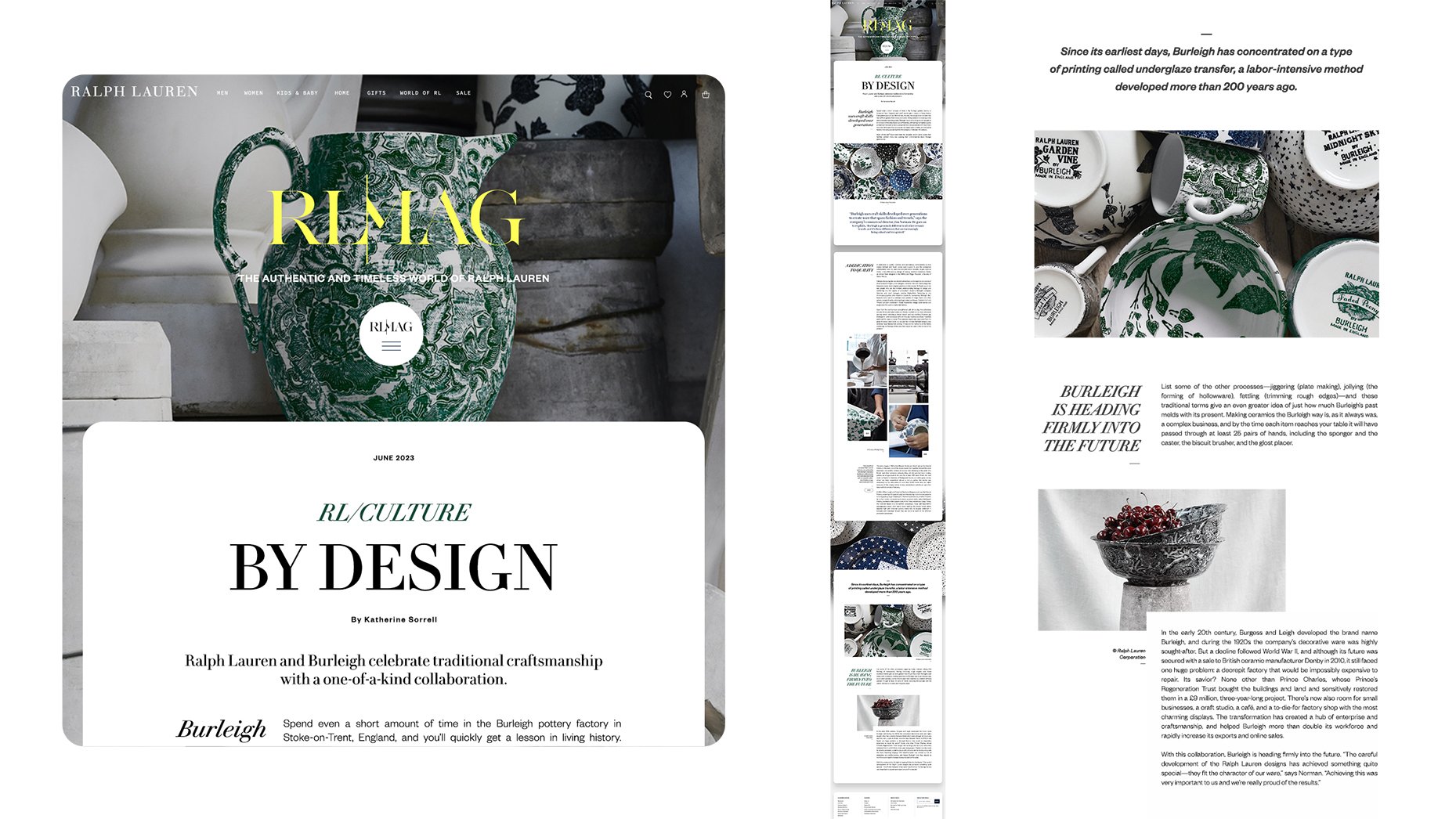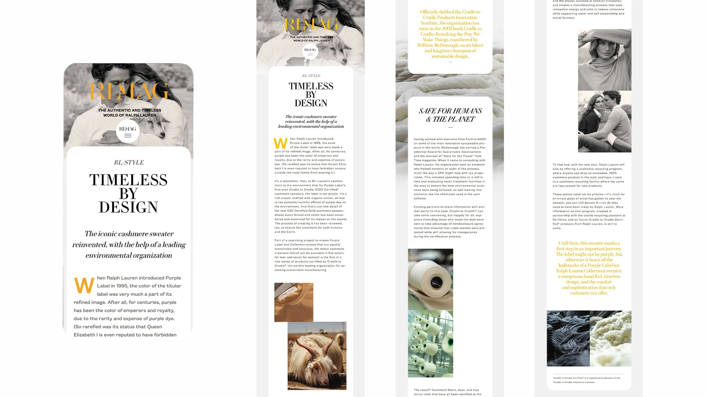 In the spring of 2023, Ralph Lauren approached our team at Numero11 to reenvision the digitally-native RL Magazine for a more elevated and user-friendly experience. The magazine encompasses the style, art, culture, and travel that inspires and reflects Ralph Lauren’s world vision. The original editorial designs were not responsive for tablet and mobile and lacked alignment with the high aesthetic standards of the Ralph Lauren brand.